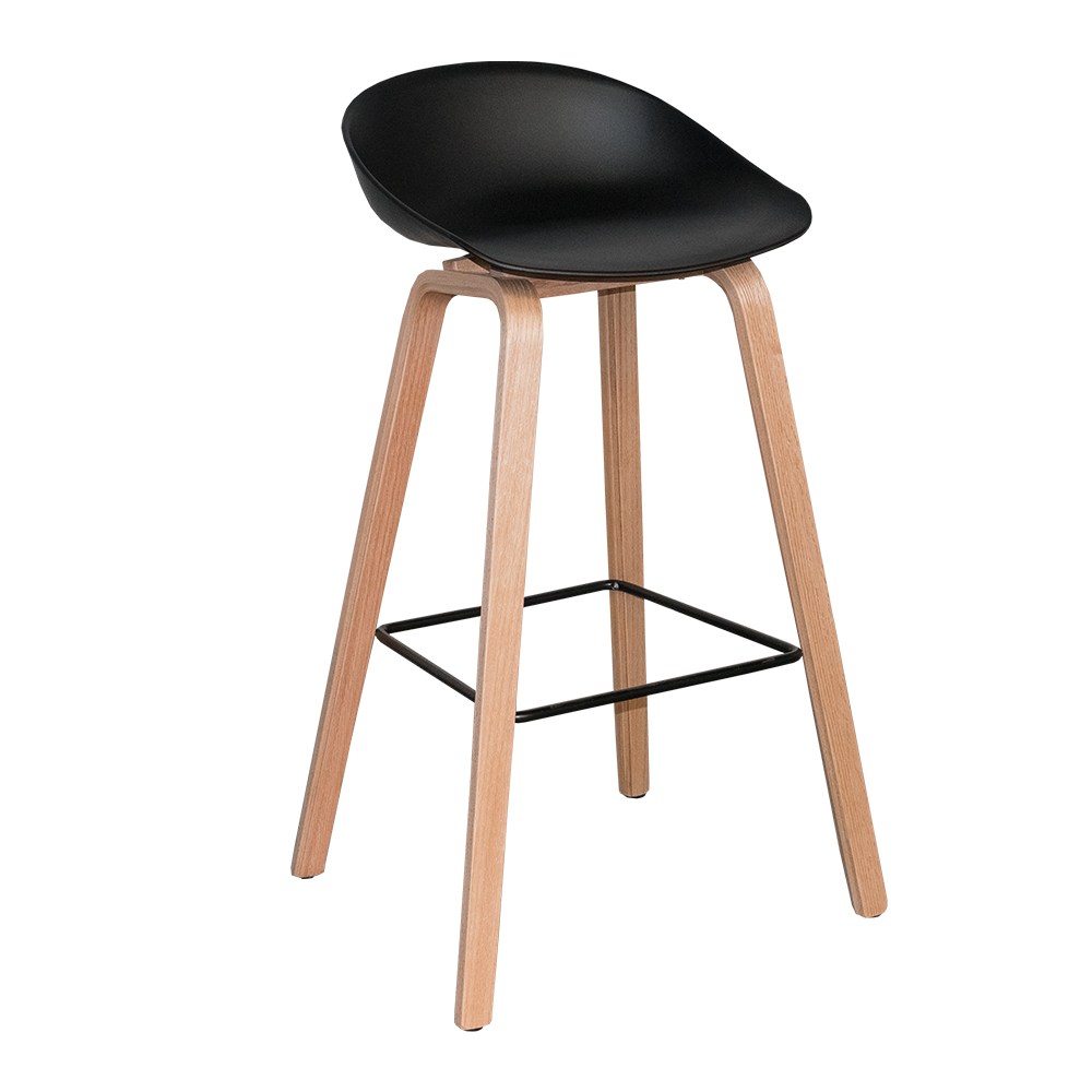 Banco de bar Italy, asiento de PVC y patas de madera.  Medidas: 42cm de ancho x 45cm de profundidad y 73cm de altura del piso hasta el asiento.