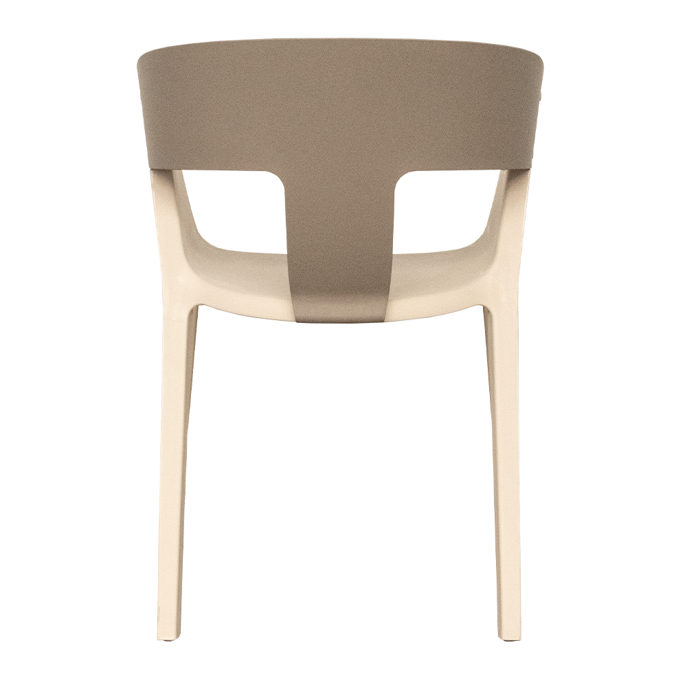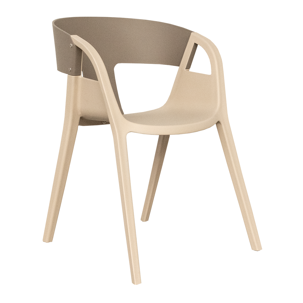 Silla de polipropileno beige con respaldo taupe, 55cm x 63cm, alto al asiento 46cm, alto al respaldo 79cm
