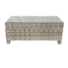 Mesa de centro vintage de wicker sintético estructura de aluminio 100x50x41cm, vidrio templado encima del top de wicker.