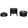 Estructura de metal recubierto con pintura color negro, tipo automotriz para uso al exterior, evitar exponer en ambientes con mucho salitre para evitar corrosión.