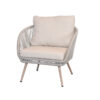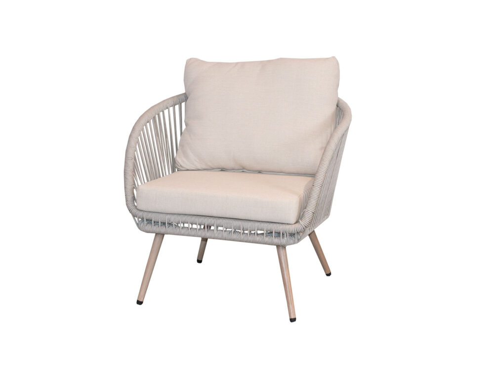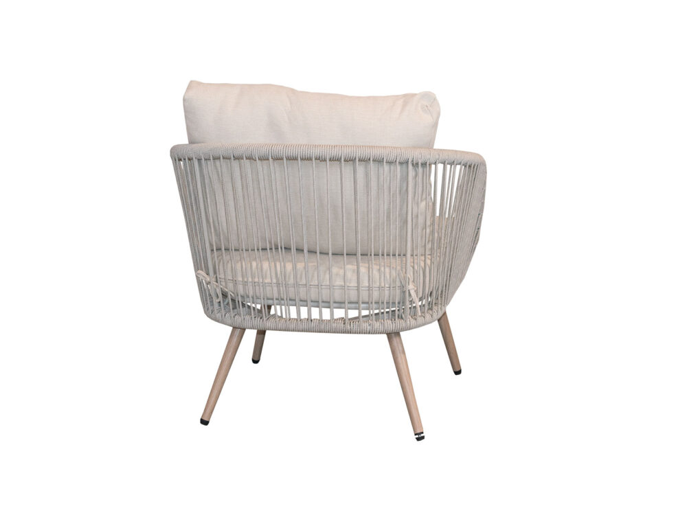 sillón: 75x70cm estructura de aluminio color madera, detalles de tejido aquatech beige y asiento de tela color beige claro.