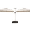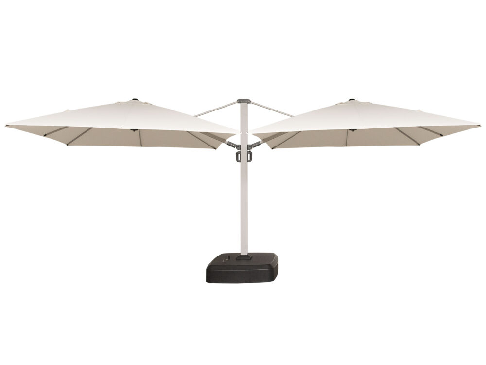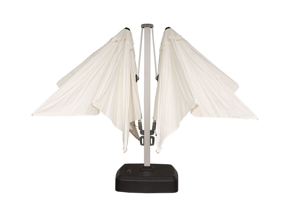 NÁPOLES SOMBRILLA DOBLE, DE BRAZO LATERAL : CADA SOMBRILLA MIDE 3X3MTS  CON UNA BASE DE RODOS, RELLENABLE DE AGUA O ARENA.
